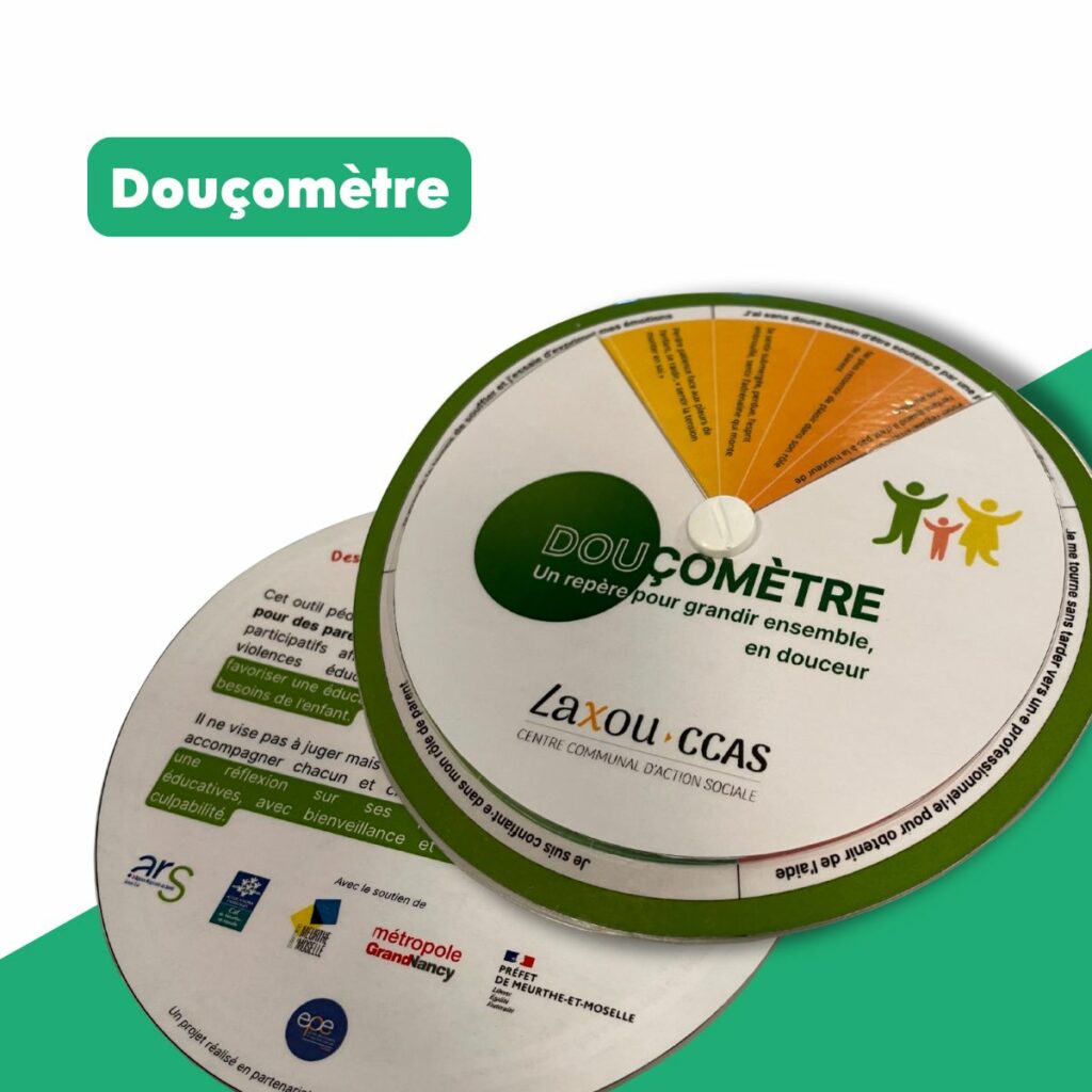 Afin de compléter la présentation du film, le CCAS de Laxou, en partenariat avec l’EPE Lorraine, a co-construit, avec des parents de la ville, un outil de sensibilisation, de repères et d’alternatives éducatives positives : le Douçomètre.